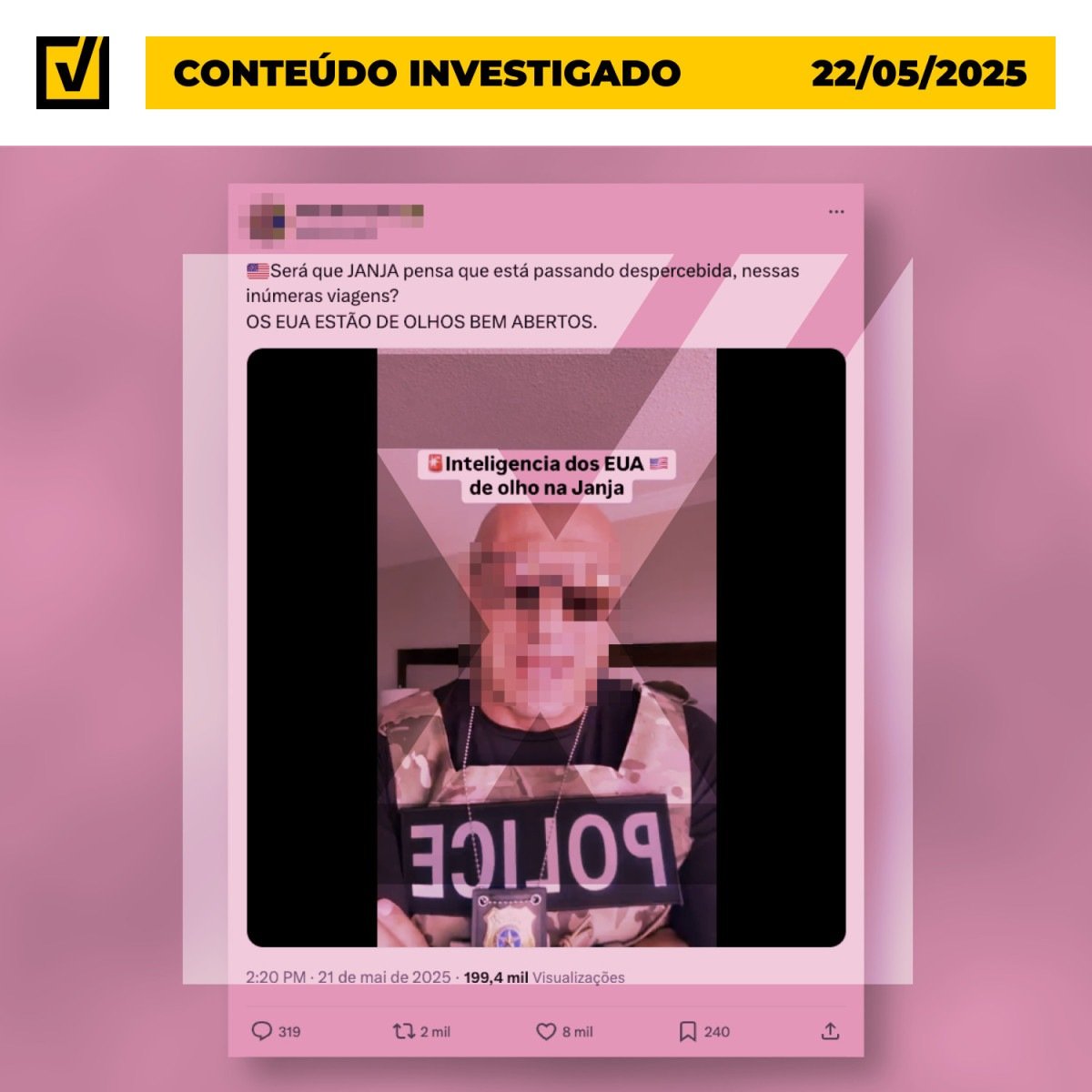 O homem ainda não detalha de onde tirou a informação de que Janja viajou para o exterior com 200 malas, nem de que a polícia norte-americana estaria vigiando a primeira-dama. Ele apenas faz essas afirmações de forma categórica, o que induz o espectador a acreditar que o que ele diz é verdade. Além disso, a afirmação de que ela está sendo vigiada pelos norte-americanos é feita com um tom conspiratório e se aproveita do fato de que dificilmente uma investigação do tipo seria confirmada pelas forças de segurança de outro país.