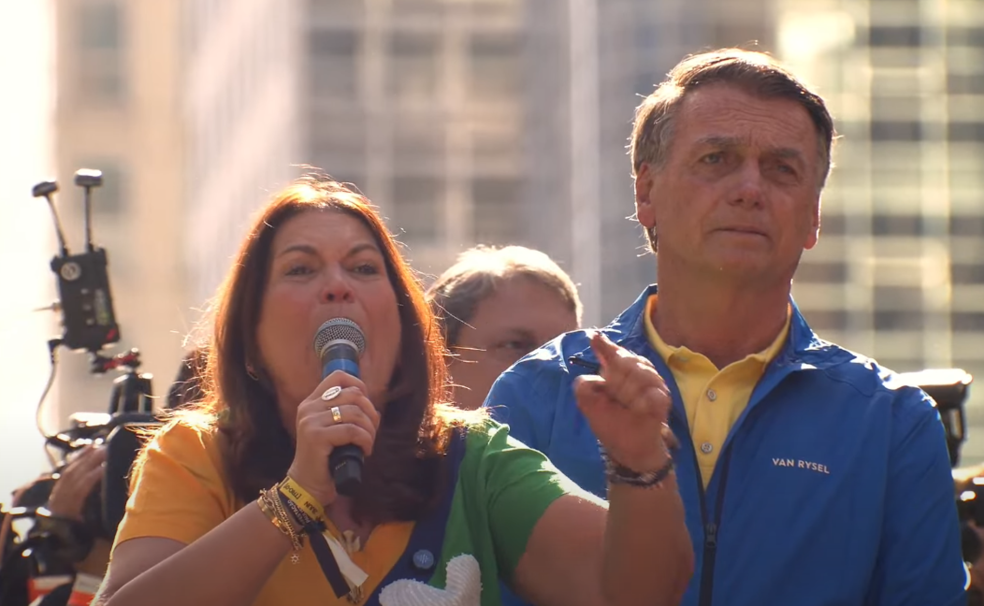 A parlamentar participou da manifestação do ex-presidente Jair Bolsonaro (PL) neste domingo (29/6), na Avenida Paulista, em São Paulo. Financiado pelo pastor Silas Malafaia, o ato tem como lema “Justiça já”, e está sendo usado pelos bolsonaristas para apoiar o ex-presidente contra o julgamento do STF.