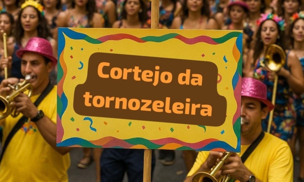 A convocação, que está sendo feita por meio das redes sociais, pede que as pessoas levem seus instrumentos musicais e vistam verde e amarelo. O panfleto da chamada para o ato é uma imagem feita por inteligência artificial que mostra um estandarte de carnaval no formato de um pé com tornozeleira.