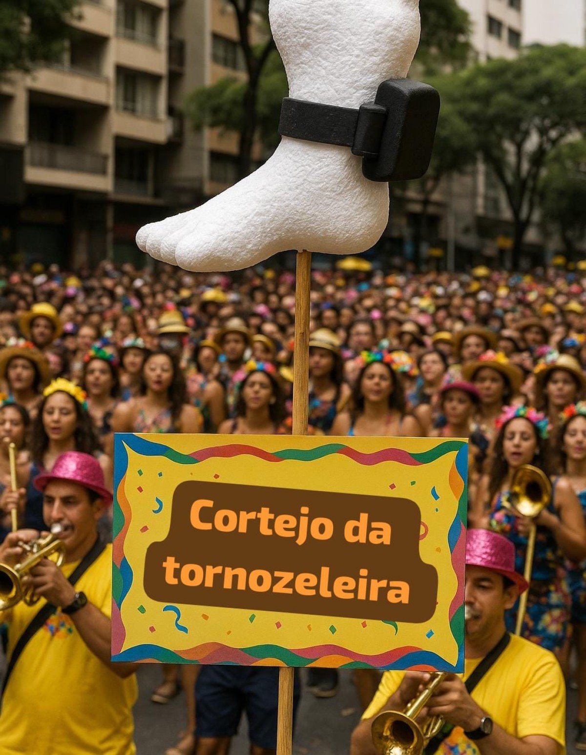 A convocação, que está sendo feita por meio das redes sociais, pede que as pessoas levem seus instrumentos musicais e vistam verde e amarelo. O panfleto da chamada para o ato é uma imagem feita por inteligência artificial que mostra um estandarte de carnaval no formato de um pé com tornozeleira.