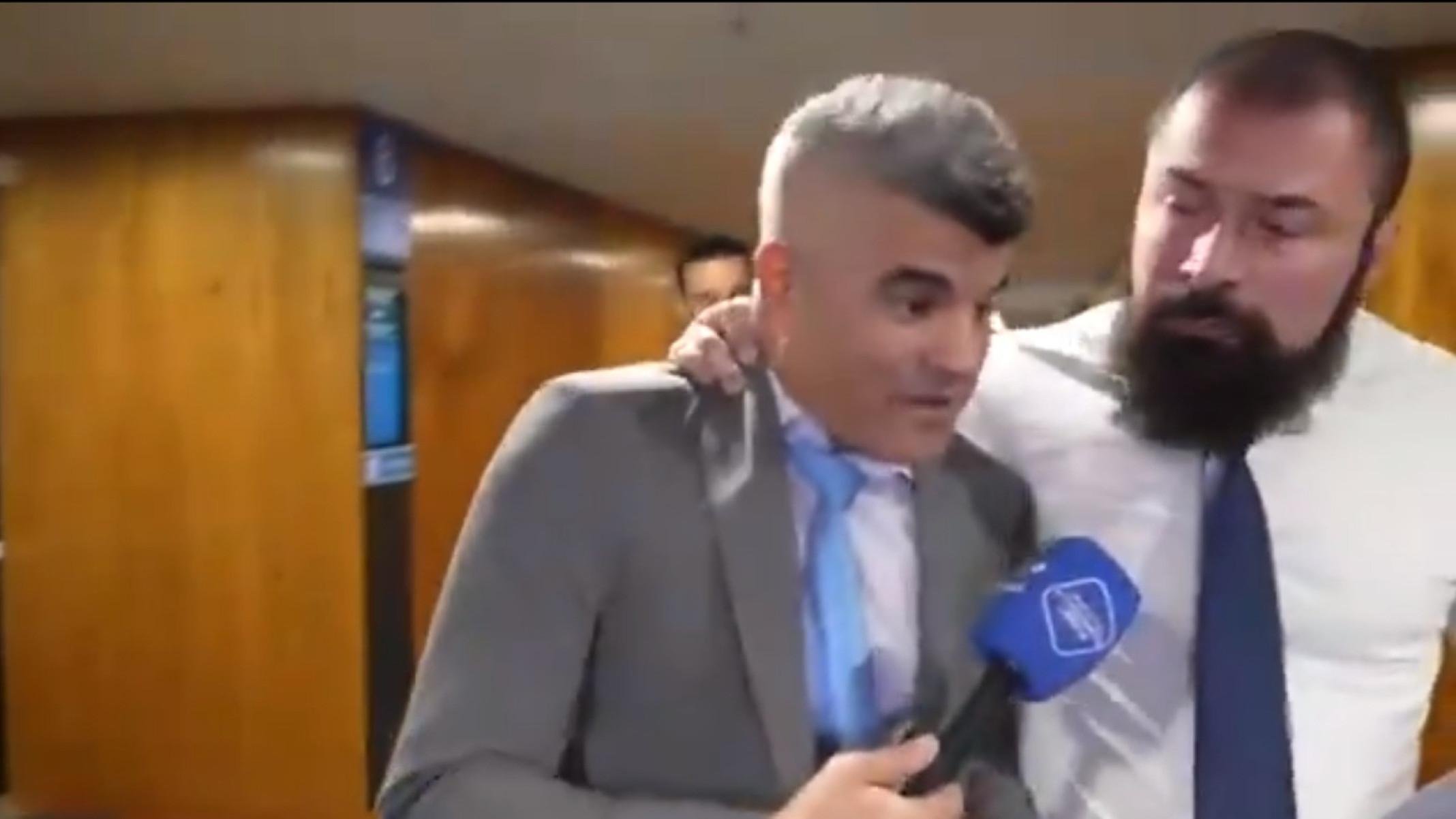 Nesse momento, o entrevistador reclamou de ter sido empurrado, o que deixou o parlamentar ainda mais irritado.