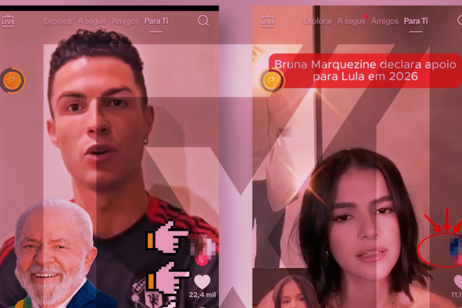Os jogadores de futebol Cristiano Ronaldo e Lionel Messi, assim como a atriz Bruna Marquezine, não declararam apoio ao presidente Luiz Inácio Lula da Silva (PT) para as eleições presidenciais de 2026, ao contrário do que publicaram páginas do TikTok.