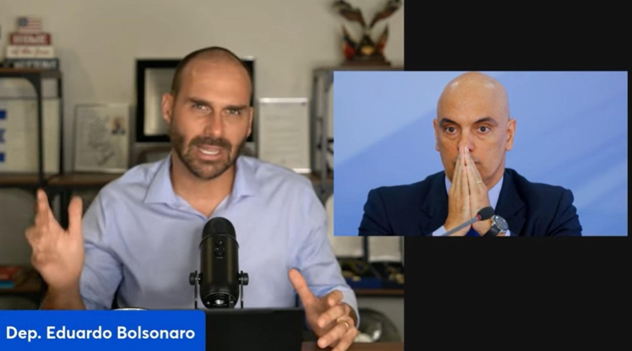 O deputado federal Eduardo Bolsonaro enviou, em 7 de julho, uma mensagem ao pai, o ex-presidente Jair Bolsonaro (PL), afirmando que eles devem escolher entre barrar as investigações por tentativa de golpe de Estado no Supremo Tribunal Federal (STF) ou enviar os envolvidos nos atos golpistas de 8 de janeiro para casa. A troca de mensagem está no relatório final da PF que pediu o indiciamento de Eduardo e Bolsonaro.
