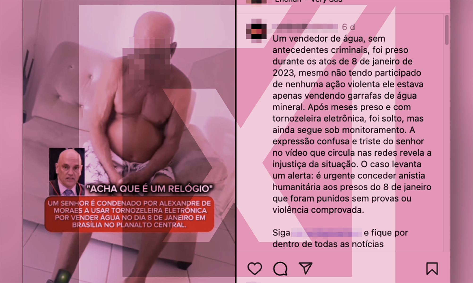 O vídeo faz um apelo emocional, mostrando um homem que aparentemente não tem consciência do motivo pelo qual está usando uma tornozeleira eletrônica. Ele chega a chamar o objeto de “relógio”. As publicações deste vídeo estão recheadas de comentários de pessoas compadecidas com a situação dele.