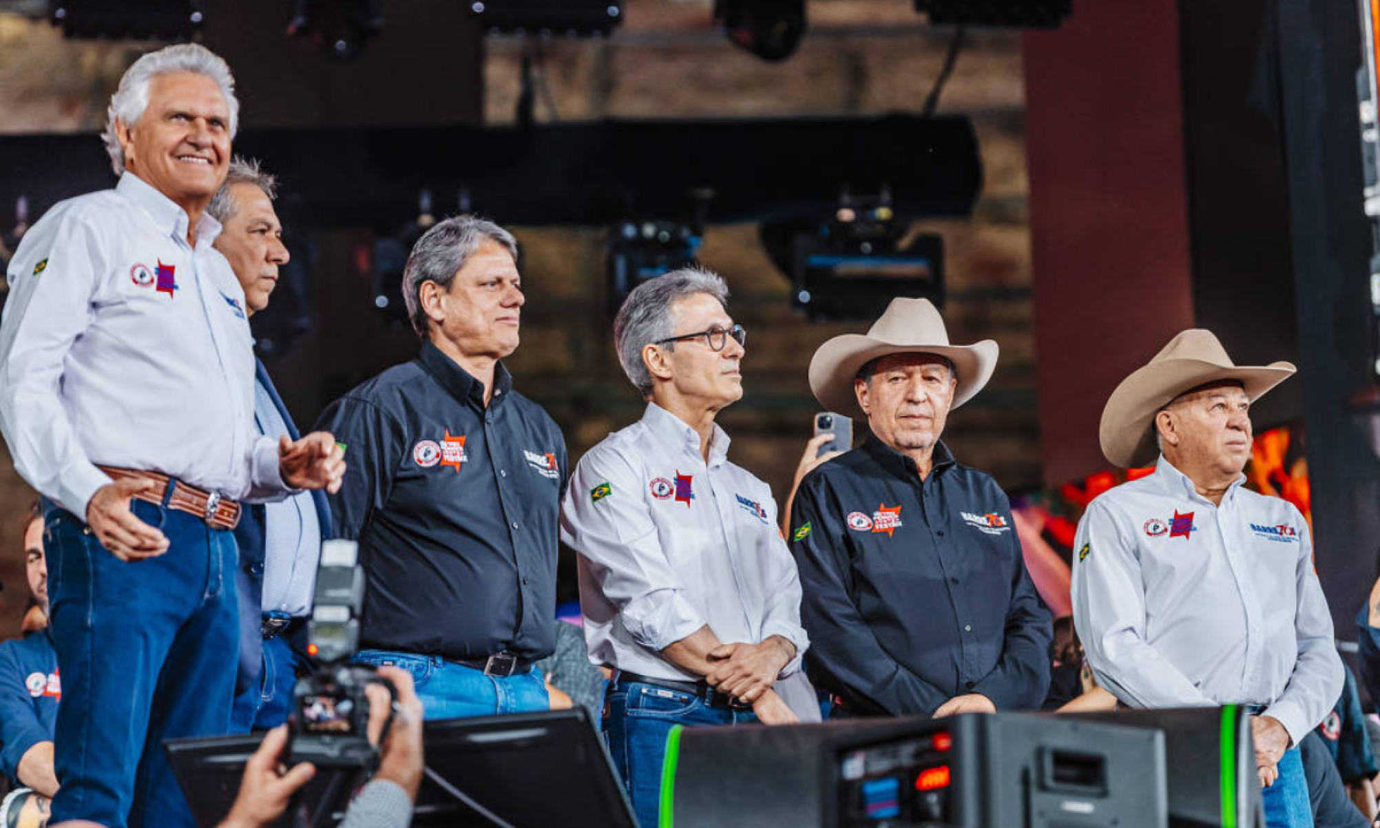 (FOLHAPRESS) - Reunidos no estádio de rodeios de Barretos (SP) pela primeira vez, três governadores da direita criticaram o PT e a esquerda em relação ao segmento, disseram que um deles vencerá a eleição presidencial do ano que vem e, fora do evento também de forma inédita desde 217, o ex-presidente Jair Bolsonaro (PL) foi defendido pelo governador paulista, Tarcísio de Freitas, na Festa do Peão de Barretos.