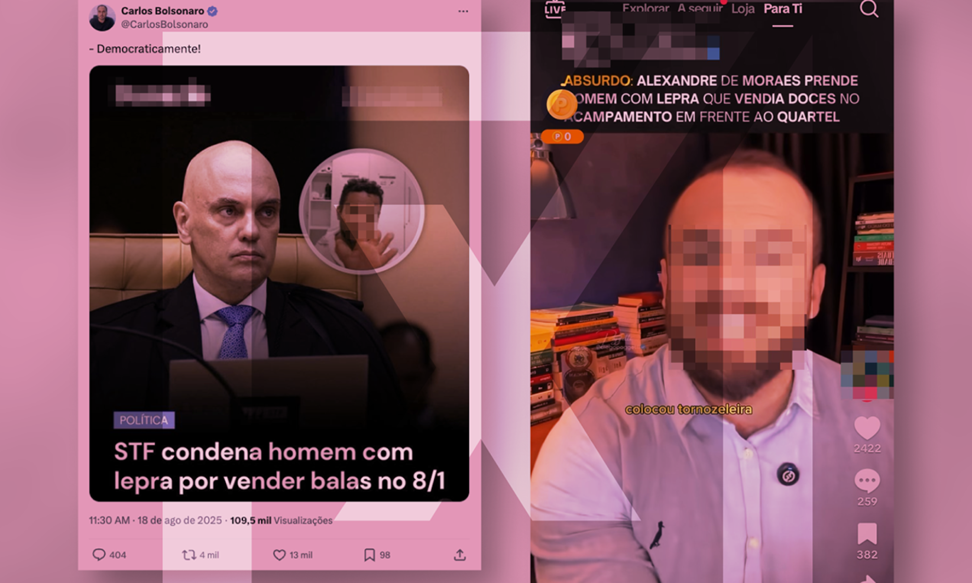 As postagens foram compartilhadas nos últimos dias por usuários das redes sociais TikTok e X, incluindo o vereador Carlos Bolsonaro (PL-RJ), filho do ex-presidente Jair Bolsonaro (PL). As mensagens afirmam ainda que o acusado tem “lepra”, termo antigo e depreciativo para se referir à doença hanseníase.