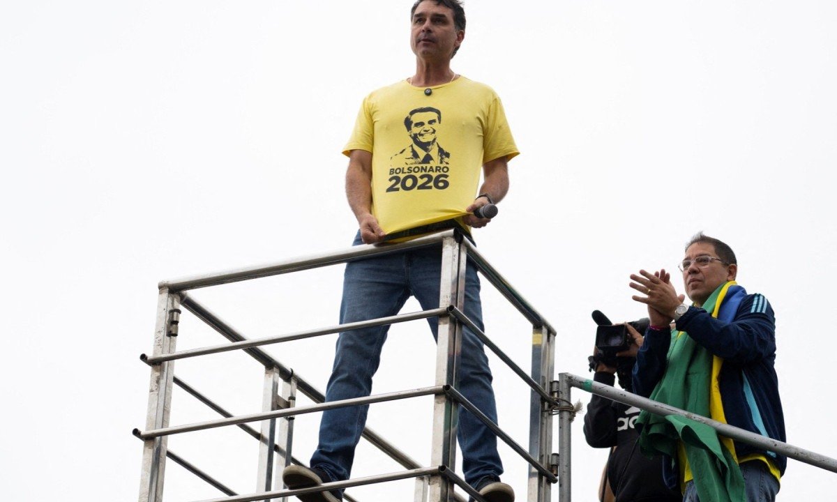Flávio Bolsonaro também defendeu que o projeto de anistia em discussão no Congresso inclua o ex-presidente. "O texto que nós vamos apresentar para que seja aprovado na Câmara e depois no Senado vai ser para anistiar todos aqueles que são perseguidos. Nós não vamos admitir uma anistia que não atenda também o presidente Bolsonaro. Anistia não é sobre pessoas, é sobre fatos. A farsa é tão generalizada que todos são acusados de cometer os mesmos atos ao mesmo tempo e na mesma proporção", afirmou.