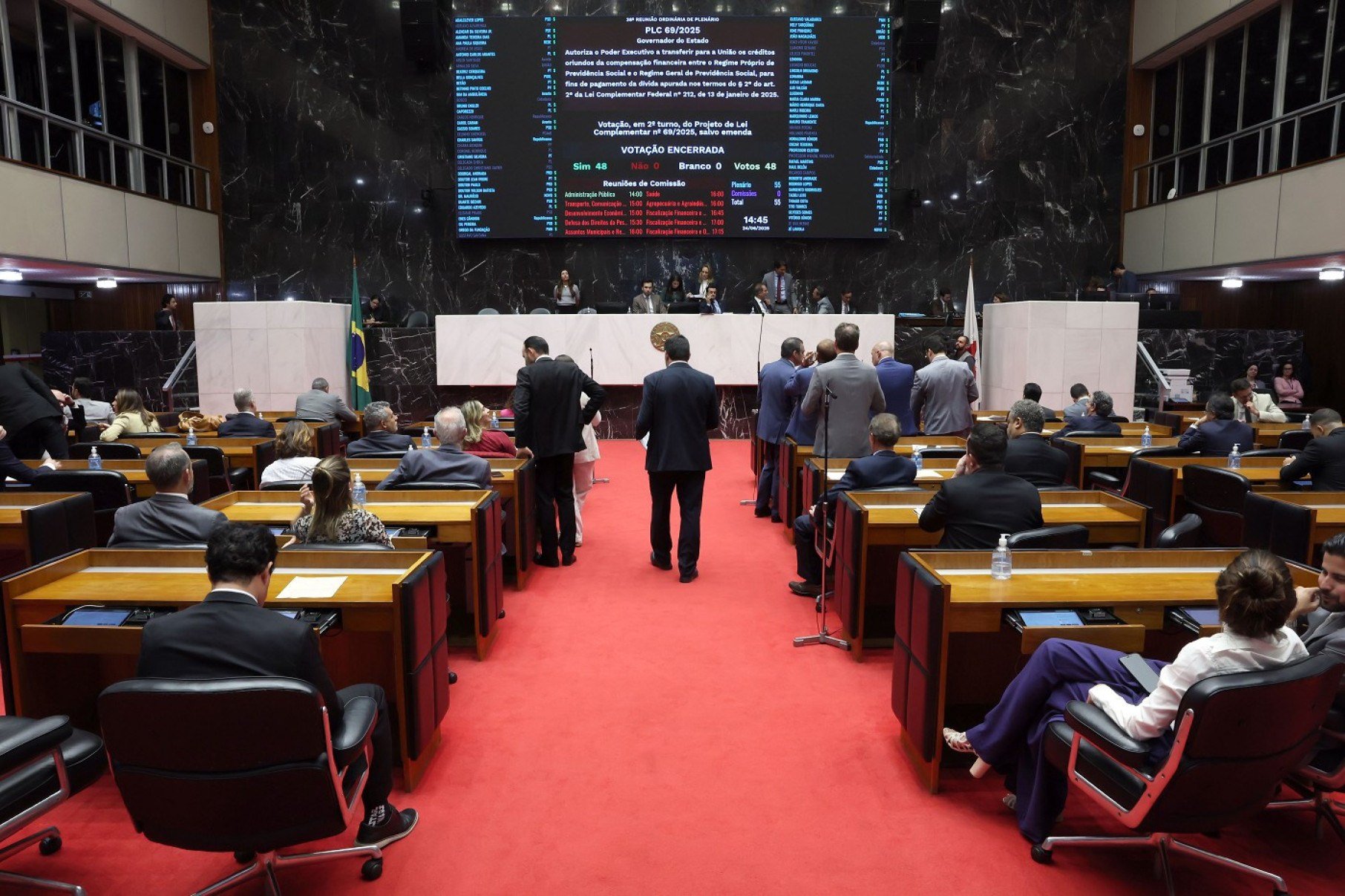 No primeiro semestre, cinco projetos do pacote do Propag foram aprovados pela Assembleia e sancionados por Zema. O primeiro foi o PL 3731/2025, texto inicial que autoriza a adesão ao Propag e a consequente saída do Regime de Recuperação Fiscal (RRF).