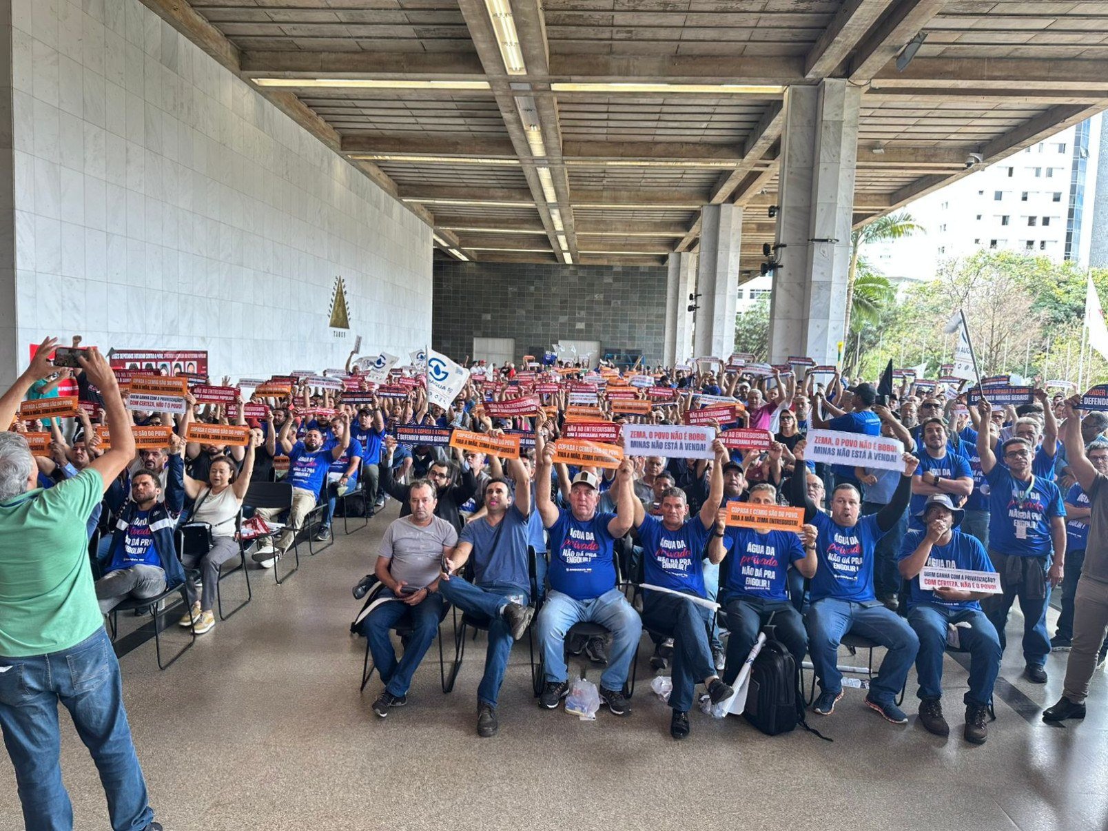 Nesta quarta-feira (24/9), a Assembleia Legislativa de Minas Gerais (ALMG) recebeu centenas de funcionários da Copasa, que ocuparam o Auditório José Alencar e o hall principal durante audiência pública sobre a privatização da estatal.