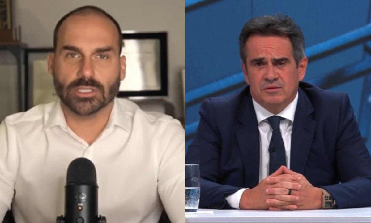 O deputado federal Eduardo Bolsonaro (PL-SP) rebateu nesta segunda-feira (13/10) uma critica do senador Ciro Nogueira (PP-PI) a sua atuação junto a políticos americanos para aplicar sanções ao Brasil e aos Três Poderes pela condenação do ex-presidente Jair Bolsonaro (PL) por tentativa de golpe de Estado.