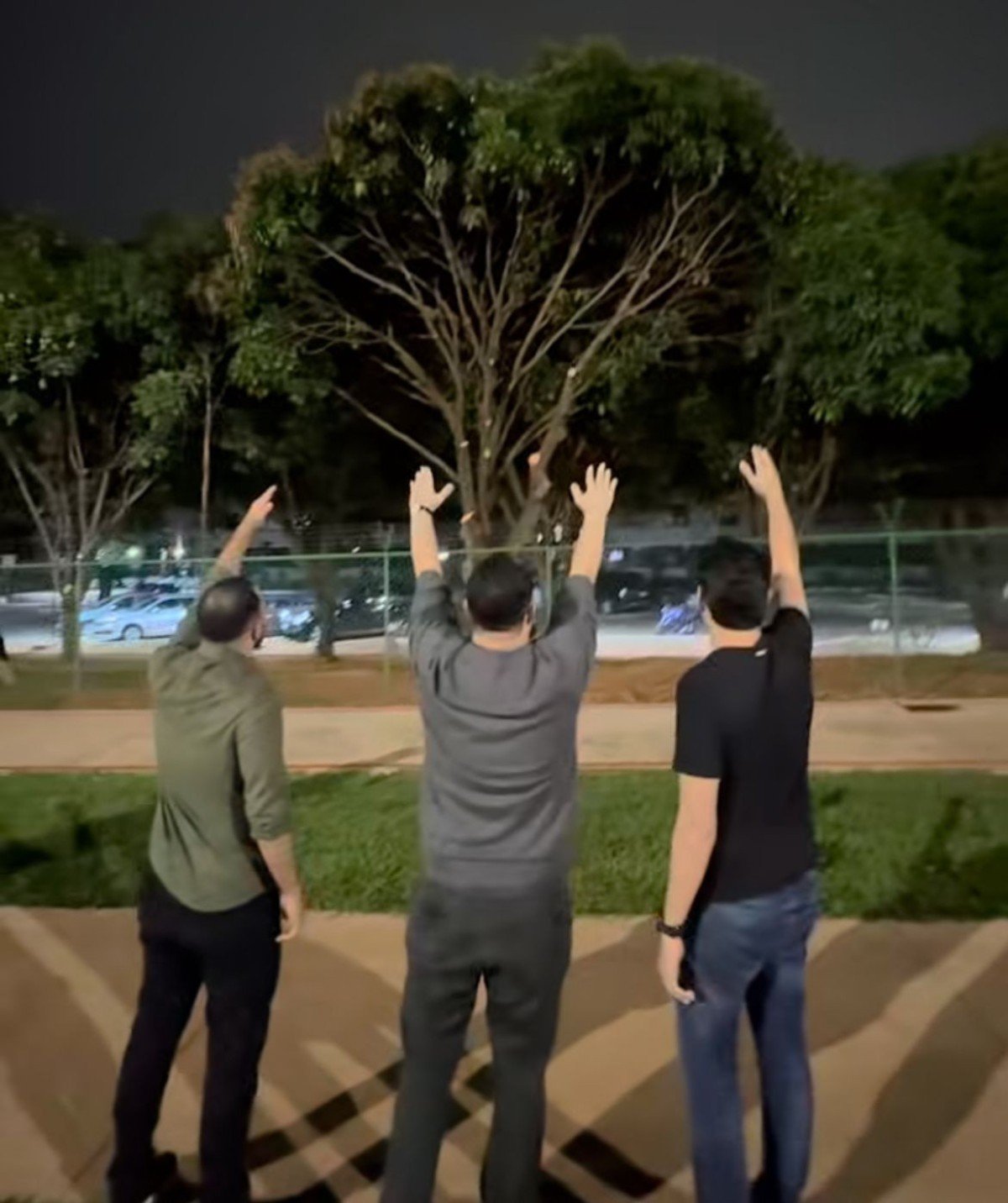 A gravação foi compartilhada no domingo (23/11) no X (antigo Twitter) e no Instagram por Carmelo Neto, com a legenda: “Um recado para o presidente Jair Bolsonaro na frente da PF. O Brasil está com ele!”. O grupo aparece na área externa da superintendência, de frente para as árvores do local e as janelas do edifício policial, sem ter contato visual com o ex-presidente.