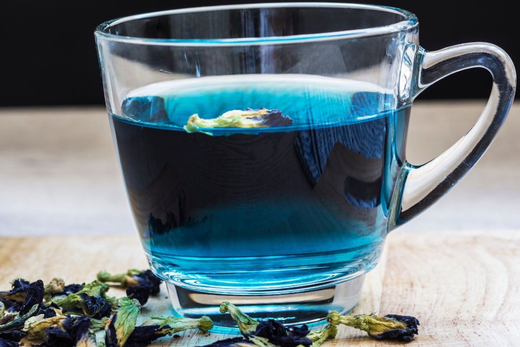 Esse é o mais famoso nas redes sociais. Feito a partir de uma flor tailandesa, o chá ganha tonalidade azul intensa quando infundido em água quente e muda para roxo ao adicionar limão, graças à alteração do pH.
