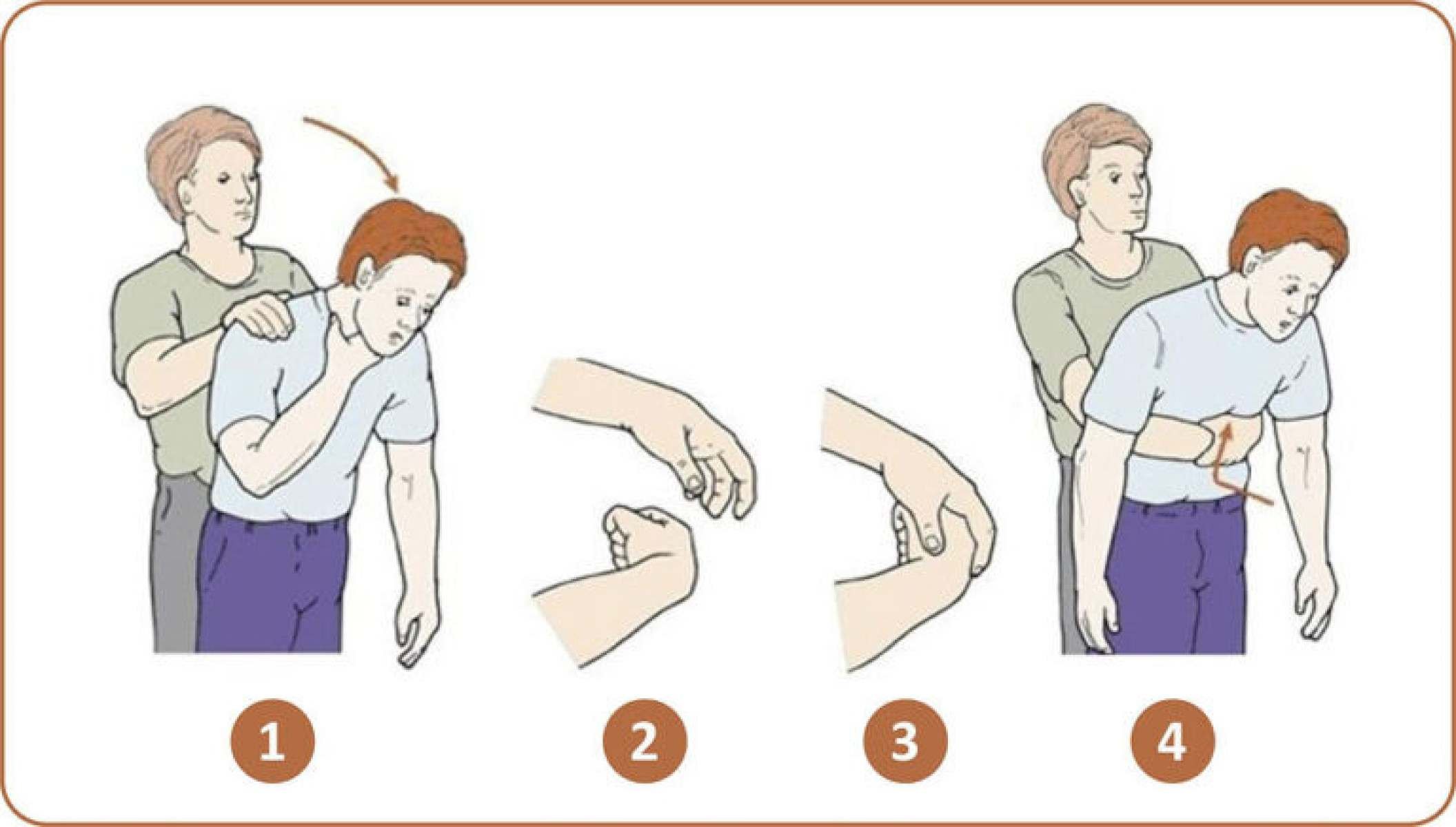 O socorro veio na forma da Manobra de Heimlich, técnica de primeiros socorros utilizada para desobstruir as vias aéreas de uma pessoa que está engasgada.