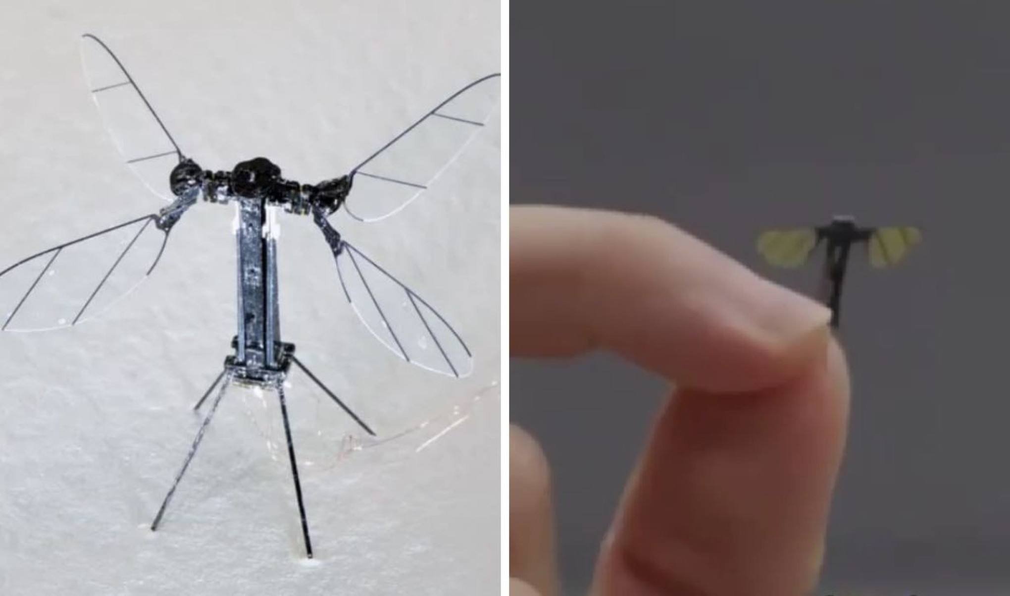 O drone, do tamanho de um mosquito, tem duas pequenas asas com estruturas semelhantes a folhas em cada lado. Ele também tinha três "pernas" finas como fios de cabelo. Esses drones em miniatura podem revolucionar operações militares secretas, missões de vigilância ou de reconhecimento sem serem facilmente detectados.