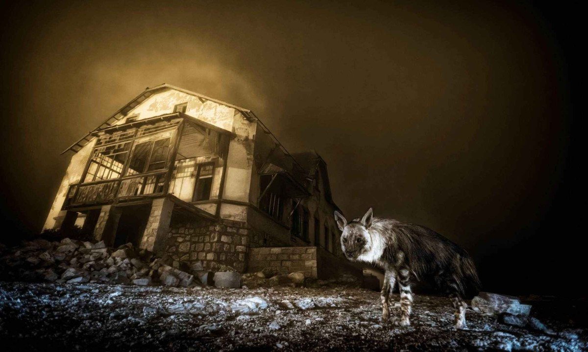 Capturada em um momento assombroso, uma hiena-marrom aparece entre os restos de uma mina de diamantes há muito tempo abandonada. A imagem valeu a Wim van den Heever o prêmio de Fotógrafo da Vida Selvagem do Ano (Wildlife Photographer of the Year).
