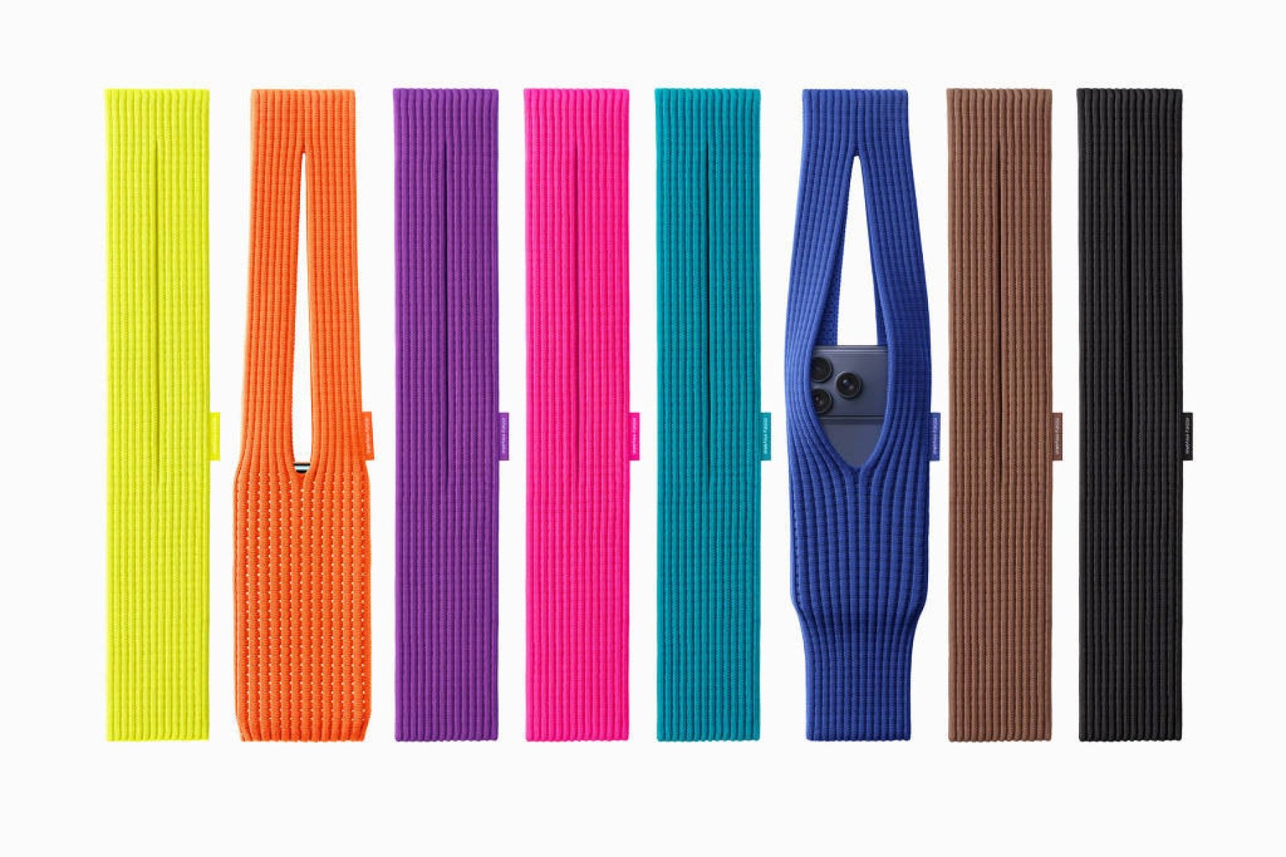 As marcas lançaram na sexta-feira (14) o iPhone Pocket, uma bolsa transversal de tecido plissado pensada para transportar o celular ou outros itens pequenos. Disponível em países selecionados, mas não no Brasil, o produto custa US$ 149,95 (cerca de R$ 800, sem considerar impostos) na versão de alça curta e US$ 229,95 (R$ 1.225) na versão com alça longa.