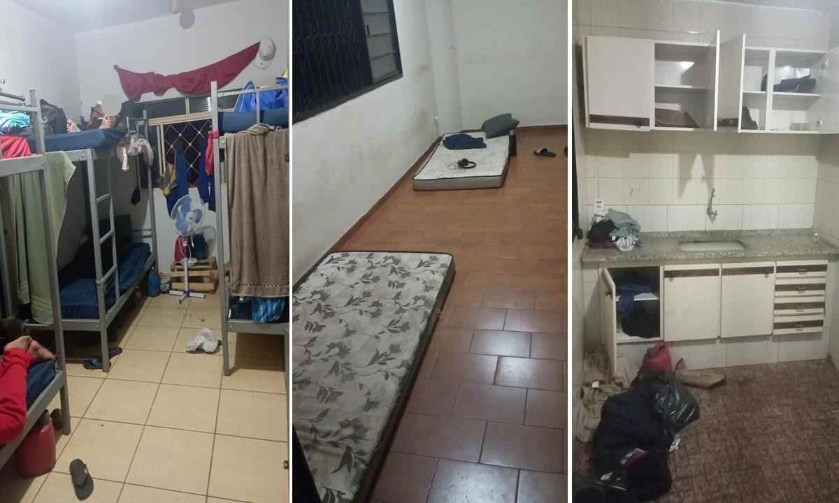 Na residência, com apenas dois banheiros, não tinha fogão, geladeira, televisão, e vários homens dormiam em colchões no chão.