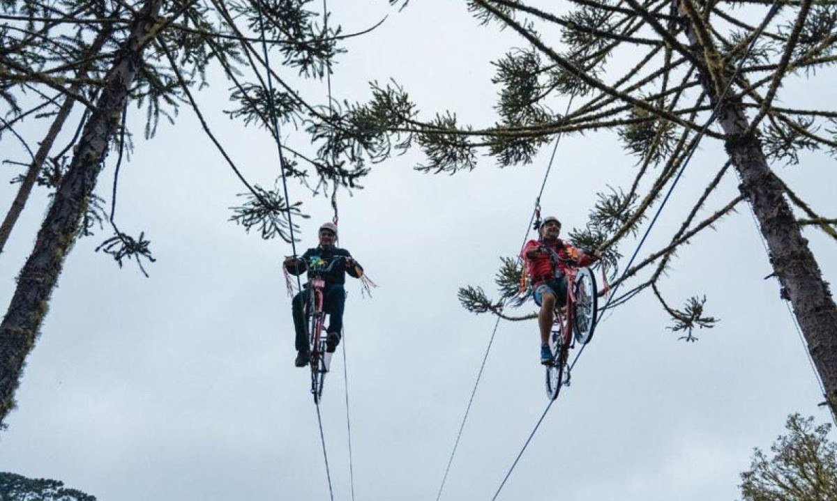 Tirolesa de Bike na Serra Catarinense oferece experiência única com a sensação de pedalar nas nuvens